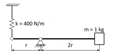 Considering massless rigid rod and small oscillations, the natural frequency (in rad/s) of vibration of the system shown in the figure is