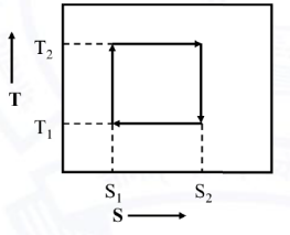 The figure shows the entropy versus temperature (S-T) plot of a reversible cycle of an engine. If T1 = 200 K and T2 = 600 K, the efficiency of the engine (in percent) is: _______ (round off to 2 decimal places).