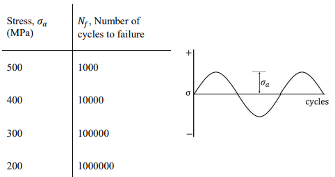 High cycle fatigue data for an alloy at various alternating stresses, σa (see figure) is given below.
