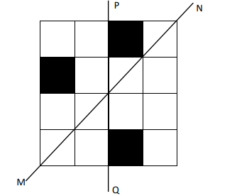 The given figure consists of 16 unit squares arranged as shown. In addition to the three black squares, what is the minimum number of squares that must be coloured black, such that both PQ and MN form lines of symmetry? (The figure is representative)