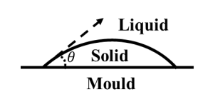 For a solid embryo in contact with a perfectly flat mould wall as shown in the schematic, the wetting angle θ is _______ degrees.