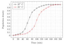 The growth of bacteria (lactobacillus) in milk leads to curd formation. A minimum bacterial population density of 0.8 (in suitable units) is needed to form curd. In the graph below, the population density of lactobacillus in 1 litre of milk is plotted as a function of time, at two different temperatures, 25°C and 37°C.