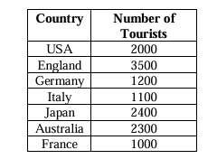 CountryNumber of Tourists