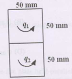 flows in the two cells are q1 and q2 as shown below.