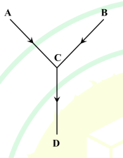 Three straight metal wires, AC, BC and CD, having same length, diameter and thermal conductivity are connected as shown in the figure. Heat flows from points 'A' and 'B' to point 'C' and from point 'C' to 'D'. Temperatures at points A, B and D are 100°C, 100°C and 40°C, respectively. Assuming steady-state condition and no heat loss from the wires, the temperature at point 'C' is ______ °C. (Answer in integer)
