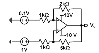 An ideal opamp with an infinite gain and infinite bandwidth is connected in feedback as shown below. The output voltage Vo for the given input voltages in the circuit is _______ V (accurate to one decimal place).