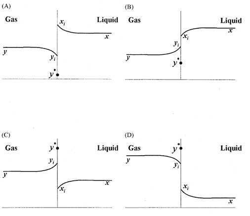 y*: equilibrium gas phase mole fraction corresponding to xi