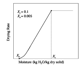 Consider the drying operation shown in the figure below for a solid loading (dry basis) of 50 kg/m2 with a constant drying rate of 5 kg/m2. The falling rate of drying is linear with moisture content.