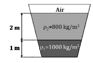 An open tank contains two immiscible liquids of densities (800 kg/m3 and 1000 kg/m3) as shown in the figure. If g=10 m/s2, under static conditions, the gauge pressure at the bottom of the tank in Pa is