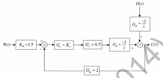 A proportional controller is being used with Kc=-4. If a step change in disturbance of magnitude 2 affects the system, then the value of the offset is