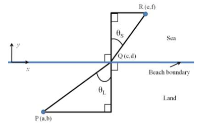 A person is drowning in sea at location R and the lifeguard is standing at location P. The