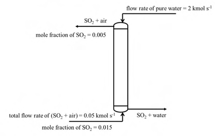 SO2 from air is absorbed by pure water in a counter current packed column operating at constant pressure. The compositions and the flow rates of the streams are shown in the figure.