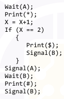 respectively. X is a shared variable initialized to 0. Each line in the pseudocode is