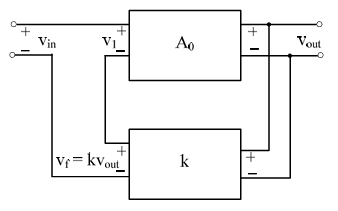In a voltage-voltage feedback as shown below, which one of the following statements is TRUE if the gain k is increased?