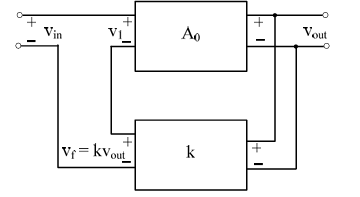 In a voltage-voltage feedback as shown below, which one of the following statements is TRUE if the gain k is increased?