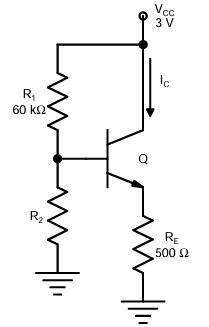 In the circuit shown below, the silicon npn transistor Q has a very high value of β. The required value of R2 in kΩ to produce IC = 1 mA is