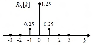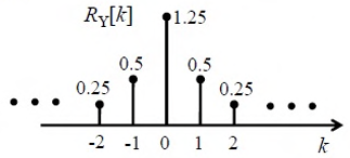 {Xn}n=−∞n=∞ is an independent and identically distributed (i.i.d.) random process with Xn equally likely to be +1 or −1. {Yn}n=−∞n=∞ is another random process obtained as Yn = Xn + 0.5 Xn−1. The autocorrelation function of {Yn}n=−∞n=∞, denoted by RY[k], is