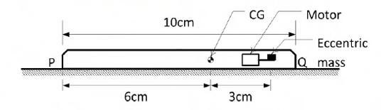 A mobile phone has a small motor with an eccentric mass used for vibrator mode. The location of the eccentric mass on motor with respect to center of gravity (CG) of the mobile and the rest of the dimensions of the mobile phone are shown. The mobile is kept on a flat horizontal surface.
