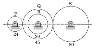 A gear train shown in the figure consists of gears P, Q, R and S. Gear Q and gear R are mounted on the same shaft. All the gears are mounted on parallel shafts and the number of teeth of P, Q, R and S are 24, 45, 30 and 80, respectively. Gear P is rotating at 400 rpm. The speed (in rpm) of the gear S is ________.