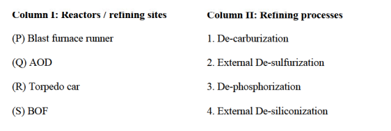 Match the reactors / refining sites in Column I with the corresponding refining processes in Column II.