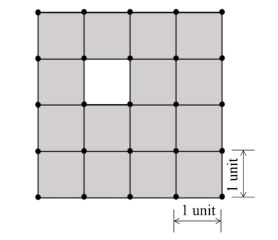 The figure shows a grid formed by a collection of unit squares. The unshaded unit square in the grid represents a hole.
