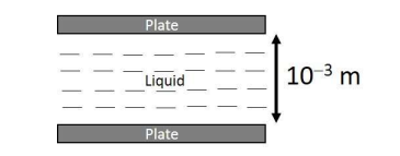 A Newtonian incompressible liquid is contained between two parallel metal plates separated by 10-3 m (see figure). A stress of 5 Pa is required to maintain the upper plate in motion with a constant speed of 2 m⋅s-1 in the horizontal direction relative to the bottom plate. The viscosity of liquid contained between the plates is _______ x10-3 Pa-s (answer rounded off to 1 decimal place).