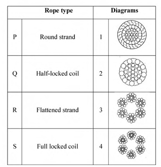 Match the wire rope types with their corresponding cross-sectional diagrams.