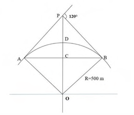The geometry of a simple planar curve (ADB) is shown below. The value of the mid-ordinate of the curve in m is __________. (round off to 1 decimal place).