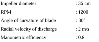 Data related to a water turbine pump with backward bladed impellers are given below: