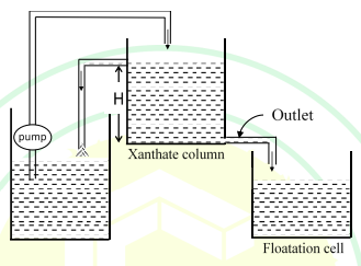 A constant feed of 400 mL/s is maintained by a Xanthate column of height H as shown in the figure. The outlet cross section area is 1.0×10-4 m2. The acceleration due to gravity is 10 m/s2. Neglecting friction and other losses, the value of H, in cm, is ______ (rounded off to 2 decimal places)