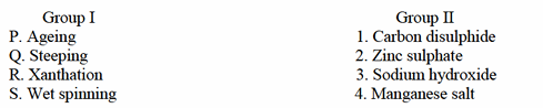 Match the process steps in viscose fibre manufacture listed in Group I with the corresponding chemicals given in Group II. The correct option is