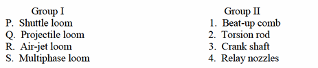 Match the looms listed in Group I with the corresponding components given in Group II. The correct option is