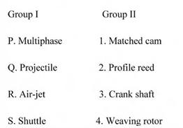 Match the looms listed in Group I with the corresponding components given in Group II. The correct option is
