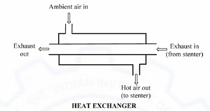 A counter-flow heat exchanger is attached to a stenter for waste heat recovery.